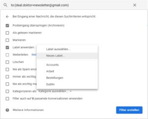 gmail ruft Nachrichten mit Label nicht ab da du "statt in den posteingang" eingestellt hast, wird dieser auch übersprungen und du siehst die mails NUR unter dem label. soweit ich weiß (gmail ist im büro geblockt) kannst mit den filtern...