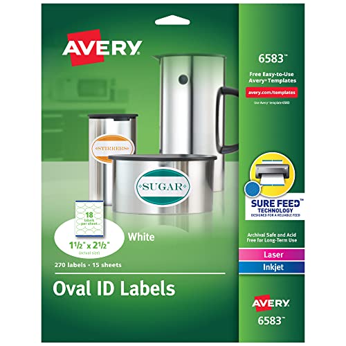 Avery Printable Blank Oval Labels, 2" x 3-1/3", Textured Matte White, 80 Customizable Labels (22829)